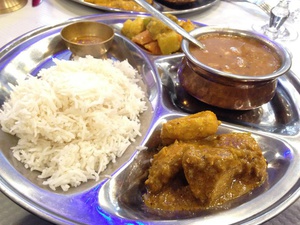 Accompagné d’un naan au fromage, un beau et grand plateau nous est servi. Une soupe de lentilles, de légumes, du poulet le tout accompagné d’un riz blanc et d’une sauce mélangeant différentes épices. Un délice. L’ensemble était très bien assaisonné, peu relevé, un vrai voyage ! Quelques ressemblances avec la cuisine Indienne, moins épicés. On sent que les produits choisis sont frais et de qualité.