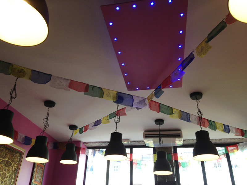 Dans une ambiance typiquement himalayenne, drapeaux de prières au plafond, mur en pierre, nappes de couleur ou encore objets portent-bonheur, c’est dans un cadre chaleureux que nous sommes accueillis, tout sourire.