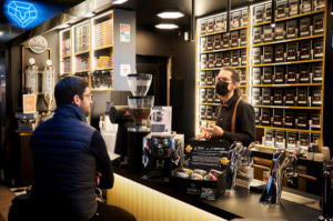 Cafés Gonéo aux Halles reprend exactement le concept du premier lieu qui avait ouvert en fin d'année 2021, rue Grenette ! Un espace boutique où on retrouve toutes les gammes de produits Cafés Gonéo, mais également un espace détente où il est possible de commander son café et de le déguster en reprenant sa route.