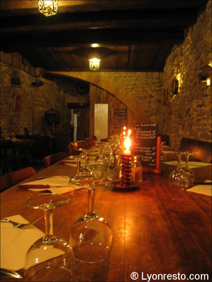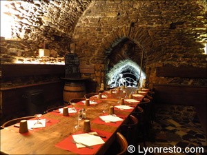 En plein cœur du Vieux Lyon, près d'une des plus charmantes traboules de la ville, on découvre cette adresse qui ne fait rien comme tout le monde : une première salle voutée avec de grandes tables de ferme se prête aux longs repas entre amis, d'autres plus courtes sont toutes réservées aux couples ou aux familles qui souhaitent découvrir Lyon par l'assiette dans un décor rare.