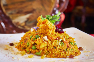 Au menu on retrouve les fameux Biryanis, mention spéciale au Royal Biryani avec poulet, calamars, crevettes, œufs, haricots verts, petits pois, carottes et ses 25 épices. Les amateurs de Tandoori pourront déguster des gambas et du poulet marinés aux épices et cuits au four Tandoori.