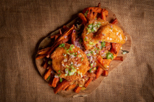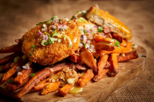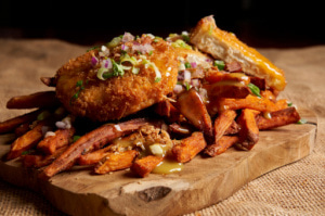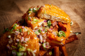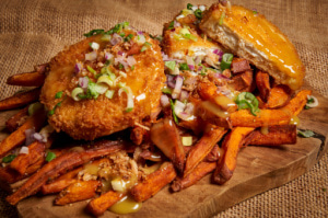 Le troisième restaurant “Osti d'Bûcheron”, nous emmène directement au Quebec. En effet, ici ce sont les poutines à l’honneur. Ce magnifique plat alliant frites, fromages et sauce est mis à l’honneur par nos deux créateurs de Savory Kitchens. Pour autant, les poutines sont préparées exclusivement avec des frites de patates douces, une originalité totale pour un plaisir certain.